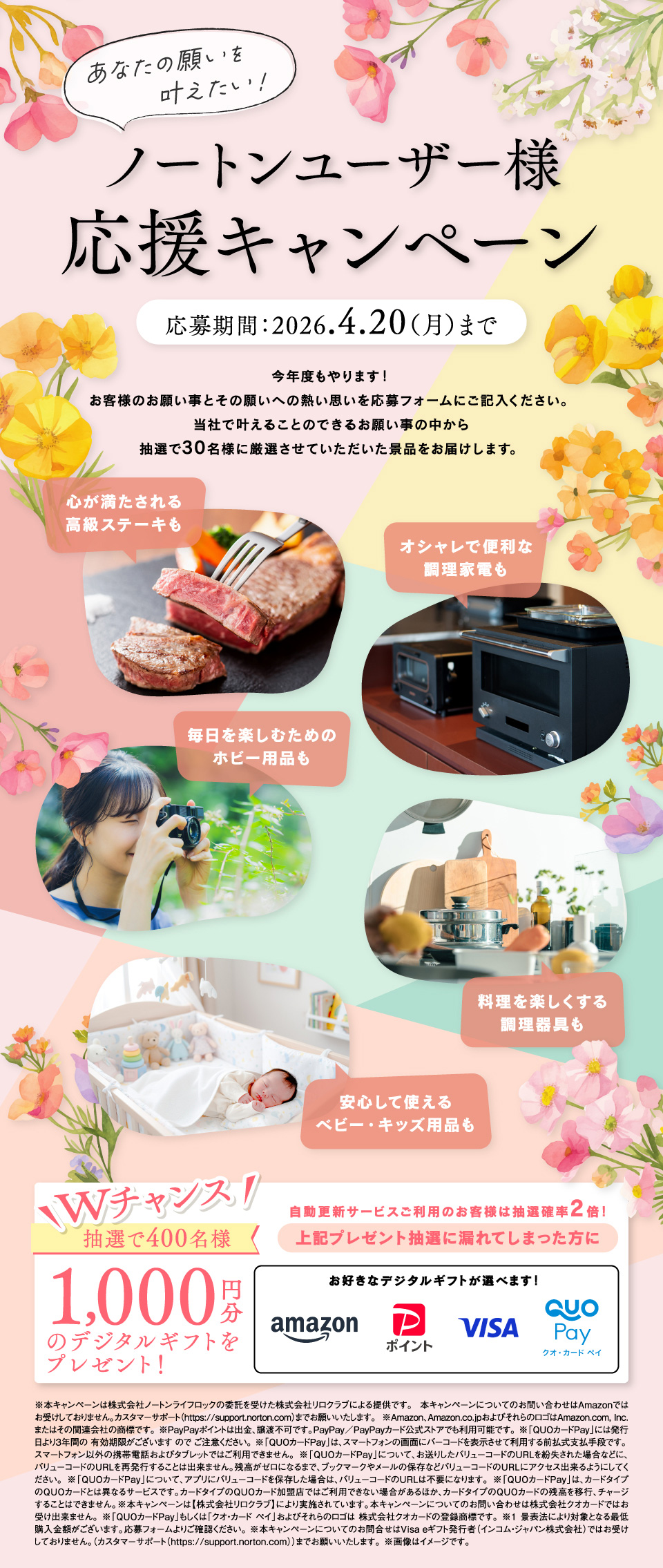 ・景品の内容をはじめ、本キャンペーンの内容はその一部、または全部が変更になる場合があります。