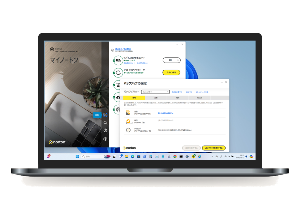 指定したフォルダに含まれる画像や音楽、動画データをノートンのクラウドサーバー上にバックアップ保存できる機能。 |