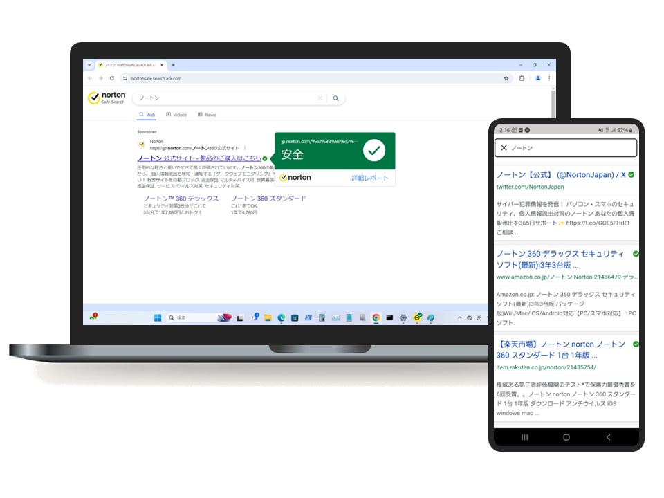 γ ノートン セーフサーチでは、スポンサー付きリンクのセキュリティを評価することはできません。また、安全でない可能性のあるスポンサー付きリンクを検索結果から除外することもできません。一部のブラウザでは使用できません。