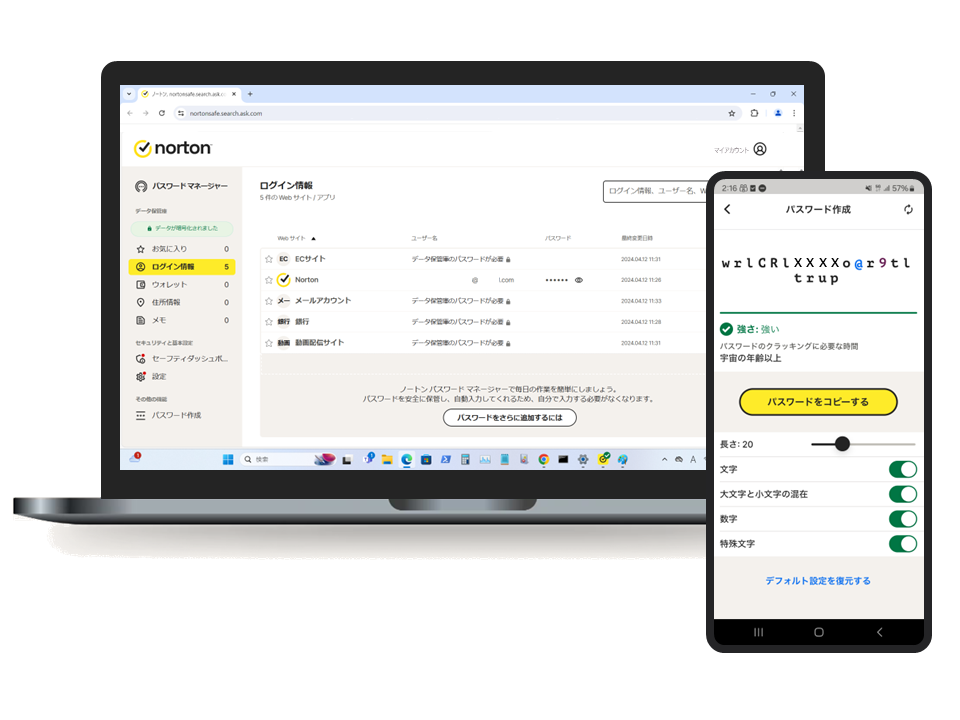 金融機関レベルの暗号化機能も備えるノートンのVPNが、個人情報を保護し安全にインターネットを閲覧できる環境を提供します。 -