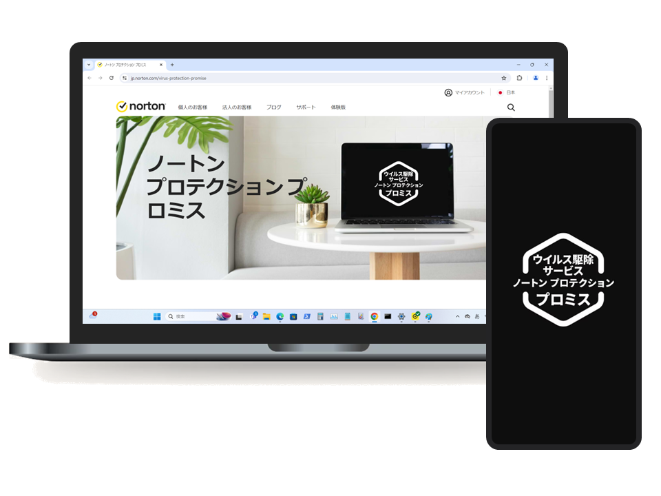 2制限事項が適用されます。ウイルス駆除サービスを利用する場合は、デバイスセキュリティライセンスの自動更新サービスに登録する必要があります。詳しくは Norton.com/virus-protection-promiseを参照してください。